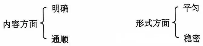 话语文章通例可以分为内容和形式两方面。内容方面是写说者所要表出的意思,形式方面是表出这意思的语言文字。所以消极的修辞,照例也可以分为两个部分。一个部分是偏重内容,如何才得把自己的意思明通地表出来,这个部分所注重的是意思之明通的表出法。另外一个部分是偏重形式,如何才得把自己的思想平稳地传达给别人,这个部分所着眼的是语言文字之平稳的使用法。要把意思明遇地表出来,在话语文章上就需要具备明确和通顺两条件;要把意思平稳地传给别人,在话语文章上就需要具备平匀和稳密两条件。这四端是消极修辞最低的限度,也是消极修辞所当遵守的最高标准。
